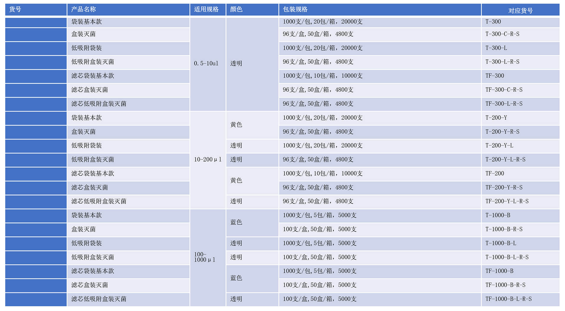 产品规格:袋装、盒装(灭菌)、低吸附、滤芯
